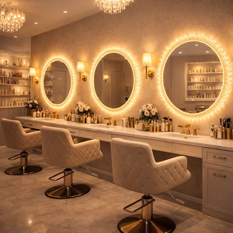 Sistemul de iluminare LED cu buton touch permite selectarea rapida a celor 3 tipuri de lumina – calda, rece si neutra – pentru a adapta atmosfera in functie de moment, fie ca este vorba de relaxare, ingrijire personala sau iluminare functionala.