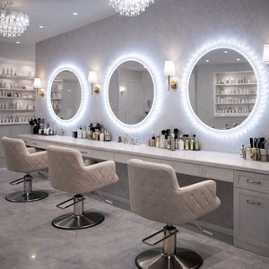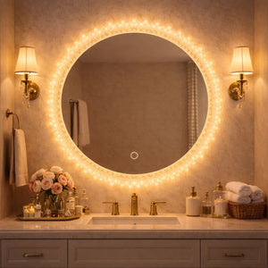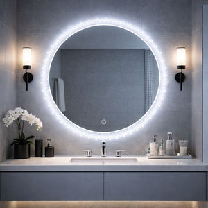 Transforma baia intr-un spatiu rafinat si contemporan cu aceasta oglinda LED rotunda, conceputa pentru interioare moderne si elegante. Conturul luminos creeaza un efect vizual subtil si sofisticat, oferind un ambient placut si echilibrat. Lumina difuza evidentiaza liniile curate ale incaperii si adauga profunzime spatiului.