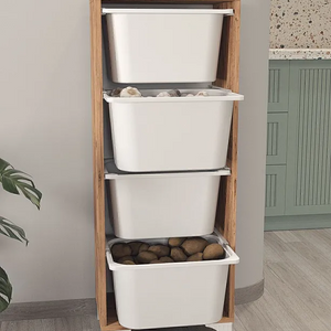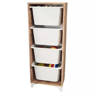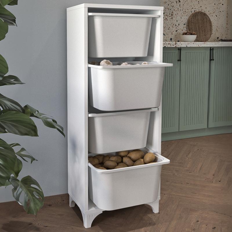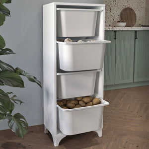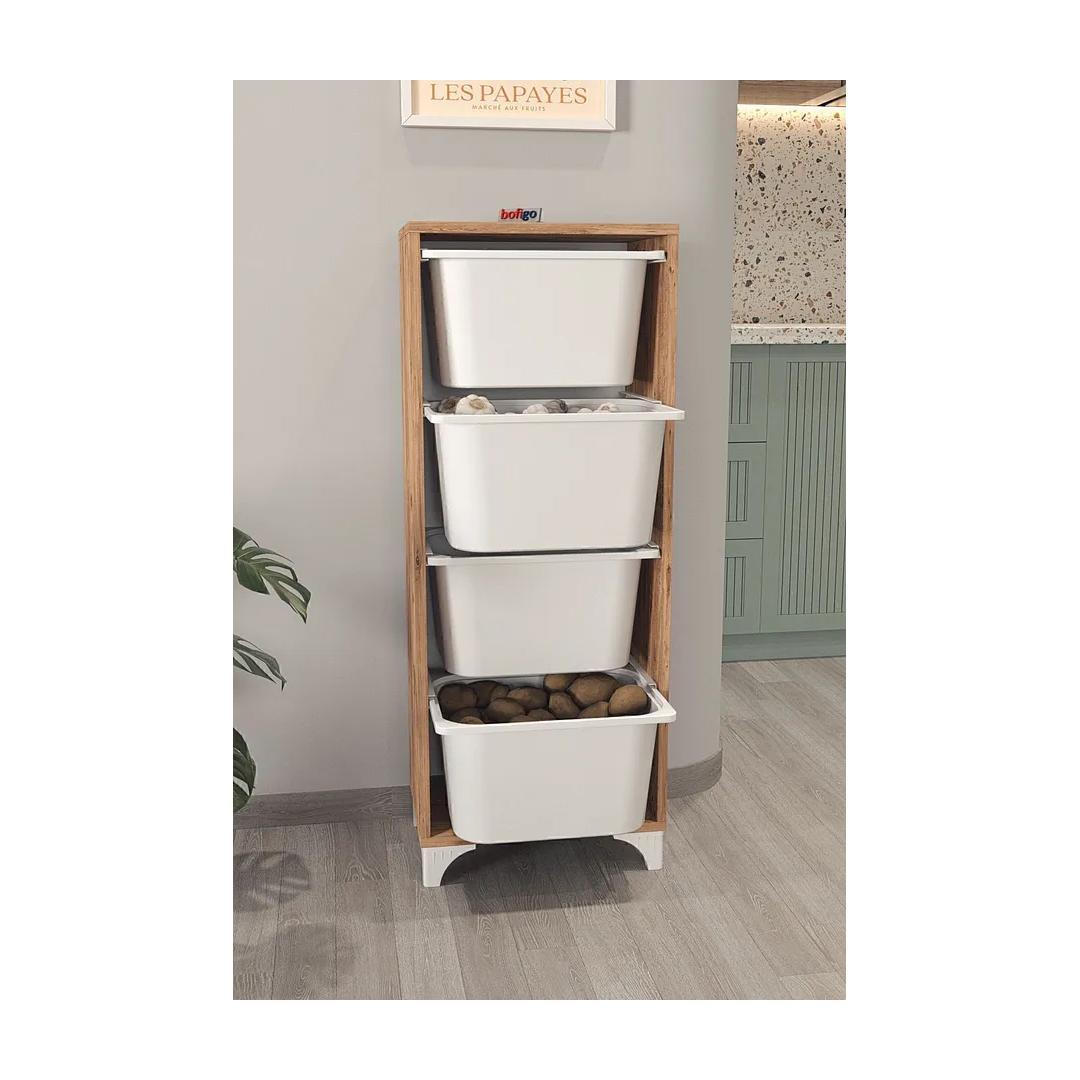 Corp de mobilier practic, ideal pentru bucătărie, baie sau camera copiilor. Dispune de 4 cosuri spațioase din plastic, cadru din PAL melaminat (18 mm grosime) și design compact. Perfect pentru organizare eficientă în orice spațiu.