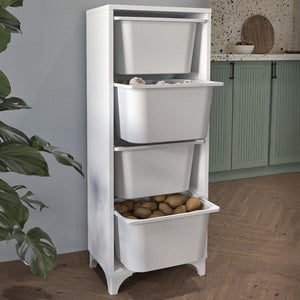 Design practic cu 4 sertare spațioase – sertarele din polipropilenă permit depozitarea ușoară a diverselor obiecte, de la accesorii de baie, produse de curățenie, jucării sau ustensile de bucătărie.