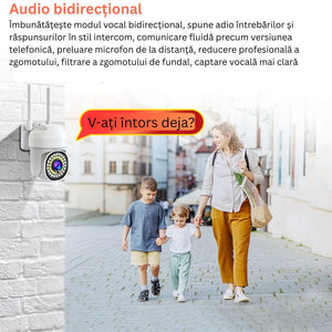 Audio bidirecțional – microfon și difuzor integrate pentru comunicare în timp real.