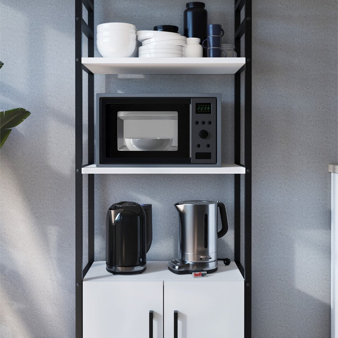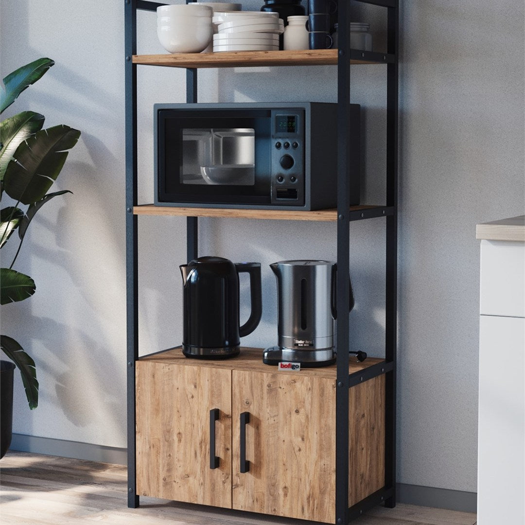 Raft bucătărie care adaugă spațiu suplimentar de depozitare.