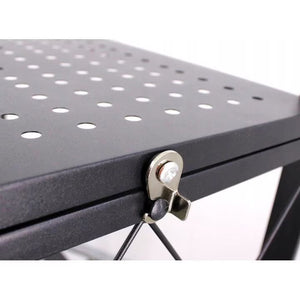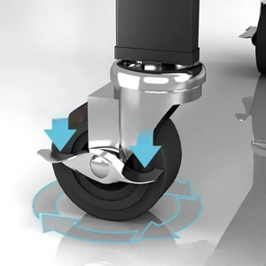 Raftul este prevazut cu 4 roti rezistente, dintre care 2 cu frana, astfel incat poate fi mutat usor oriunde ai nevoie. Il fixezi simplu, fara efort.