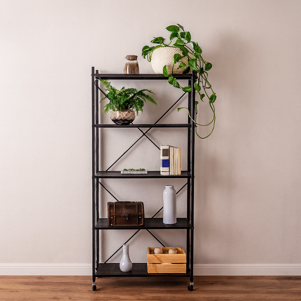 Raftul metalic pliabil este soluția ideala pentru organizarea eficienta a locuintei. Datorita rotilor integrate, poate fi mutat cu usurinta dintr-un loc in altul, iar sistemul de blocare de pe 2 dintre roti asigura stabilitate atunci cand este asezat in pozitie fixa.