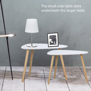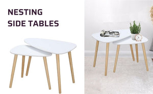 Setul de 2 masute de cafea in stil nordic aduce un plus de eleganta, functionalitate si minimalism oricarei incaperi. Cu un design original si simplu, masutele pot fi folosite impreuna sau separat, iar atunci cand nu ai nevoie de ele, pot fi stivuite cu usurinta pentru a economisi spatiu.