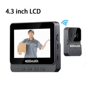 Sonerie video inteligenta Wireless, Ecran IPS 4.3 inch, Night Vision, Senzor IR, Interfon Video HD, 8MP, comunicare bidirectionala, unghi de vizualizare 170°, baterii incorporate, Negru