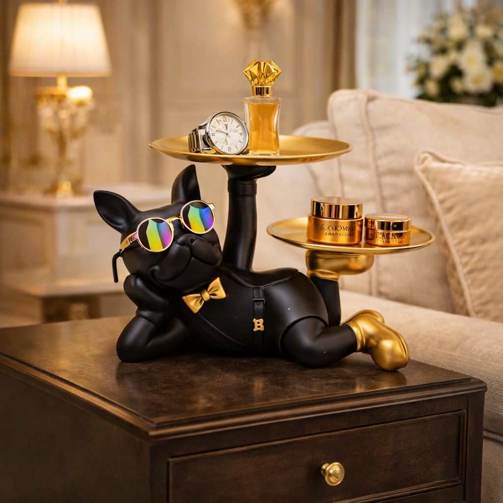 Aceasta statueta decorativa in forma de Bulldog Francez imbina designul artistic cu functionalitatea practica. Realizata din rasina de inalta calitate, ofera stabilitate excelenta, rezistenta ridicata la uzura si este usor de curatat, fiind ideala pentru utilizare zilnica.