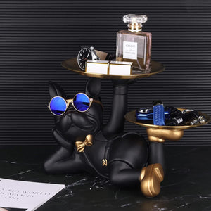 Statuie Decorativa Bulldog cu Tavi pentru Chei si Accesorii 32 x 17 x 18 cm, negru