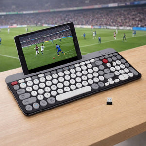 Datorita conectarii duble, poti folosi tastatura atat prin Bluetooth, cat si prin stick USB 2.4GHz, avand posibilitatea de a conecta pana la 2 dispozitive simultan. Este compatibila cu laptopuri, PC-uri, telefoane si tablete, indiferent de sistemul de operare.