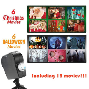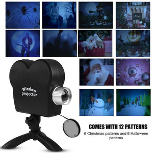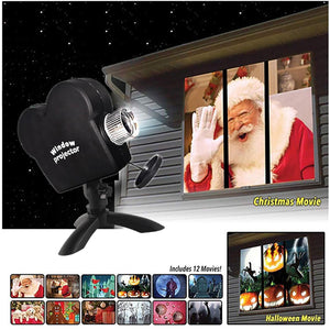 Videoproiector pentru fereastra, Window Wonderland, 12 Filme, Craciun si Halloween, Negru
